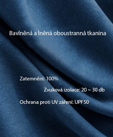 Zatemňovací a akustický závěs, který je vyroben z kvalitního, zesíleného oboustranného bavlněného a lněného materiálu.
