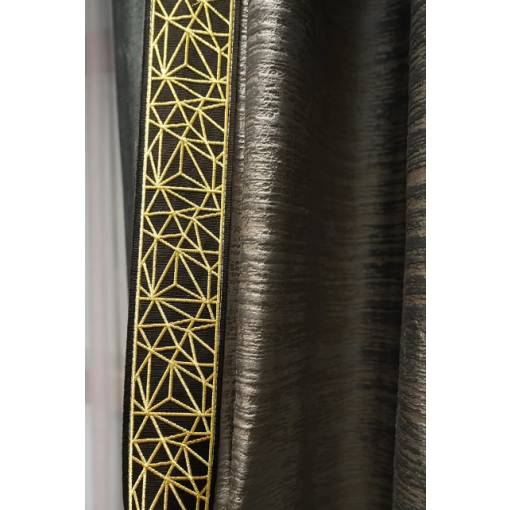 Hedvábný zatemňovací závěs ve Vintage stylu se zavěšením rod pocket - Černo šedý se zlatým vzorem, 100 x 250 cm