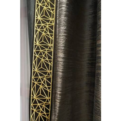 Hedvábný zatemňovací závěs ve Vintage stylu se zavěšením pencil pleat - Černo šedý se zlatým vzorem, 300 x 250 cm