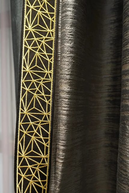 Hedvábný zatemňovací závěs ve Vintage stylu se zavěšením grommet top - Černo šedý se zlatým vzorem, 300 x 250 cm