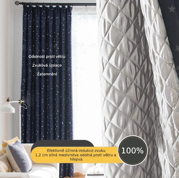 Závěs nabízí vynikající zvukovou a tepelnou izolaci díky své vysoce kvalitní výplni z bavlny. Zvuková izolace dosahuje hodnoty až 25 dB, což výrazně snižuje hluk z okolí a vytváří klidnější prostředí.