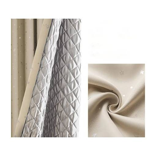 Základní tkanina závěsu slouží k pevnému uchycení bavlněné vaty, která má tloušťku 1,2 cm. Tento detail zajišťuje rovnoměrné rozložení výplně po celé ploše závěsu, což zvyšuje jeho účinnost a komfort užívání.