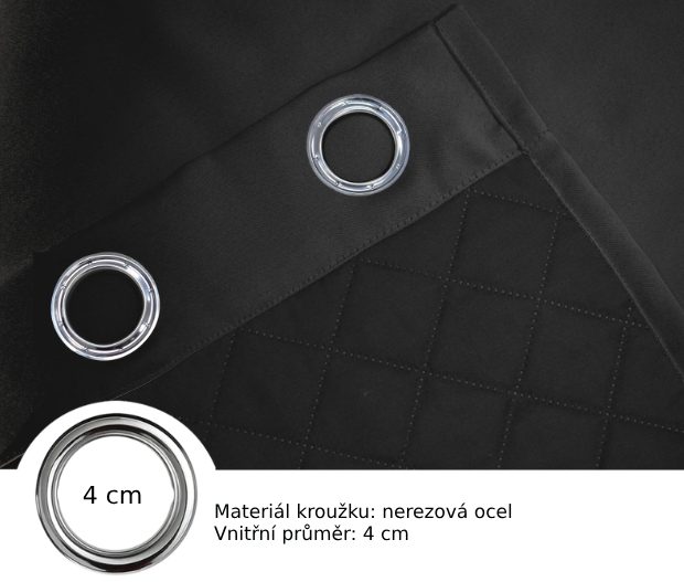 Prošívaný zatemňující, termoizolační, vodoodpudivý a akustický závěs se zavěšením grommet top - Černý, 132 x 244 cm