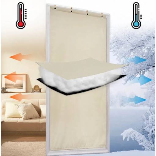Termoizolační, voděodolný, akustický závěs do dveří se zavěšením grommet top nebo na suchý zip - Béžový, 130 x 220 cm