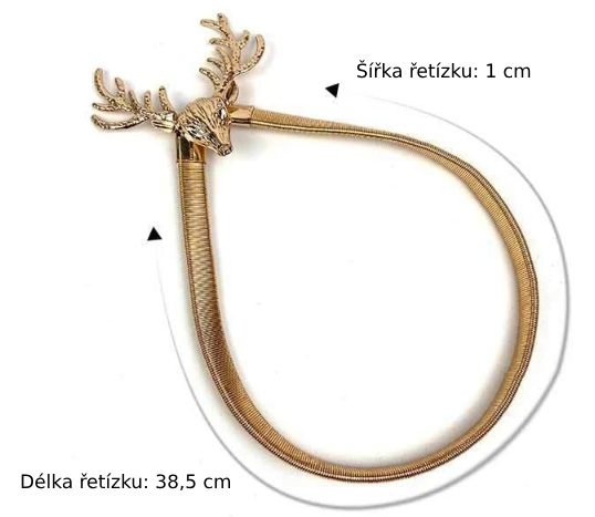 Tento pozlacený řetízek, dlouhý 38 cm, se vyznačuje zdobeným prvkem, který slouží jako upínání.