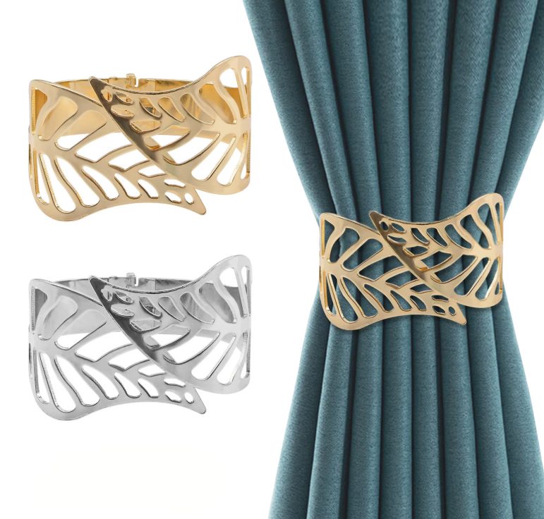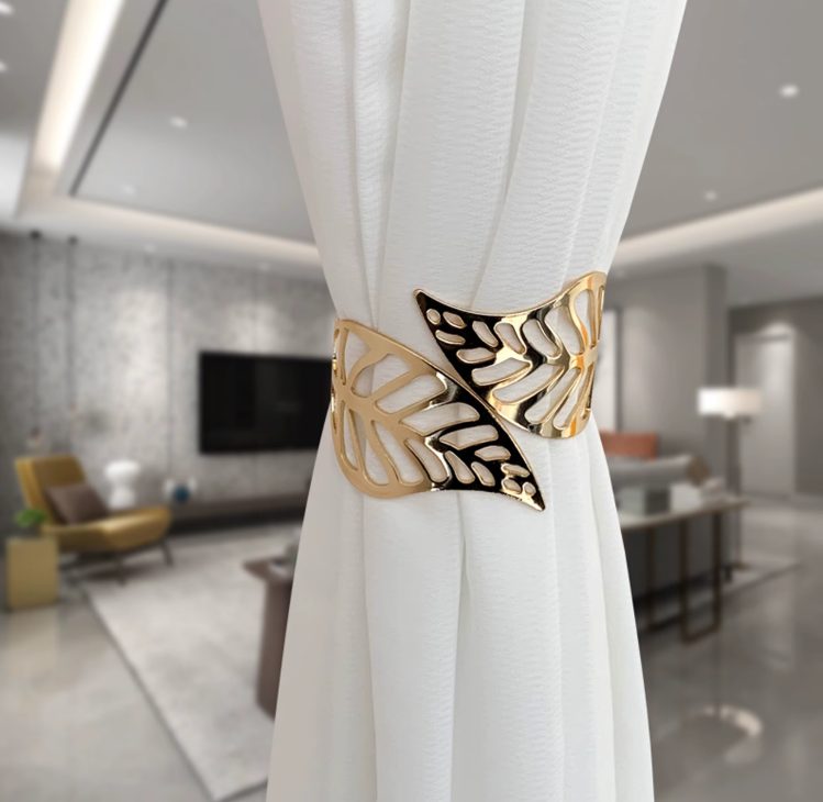 Kovová spona na závěs je praktický a elegantní doplněk, který vám umožní snadno a stylově upravit závěsy podle potřeby.